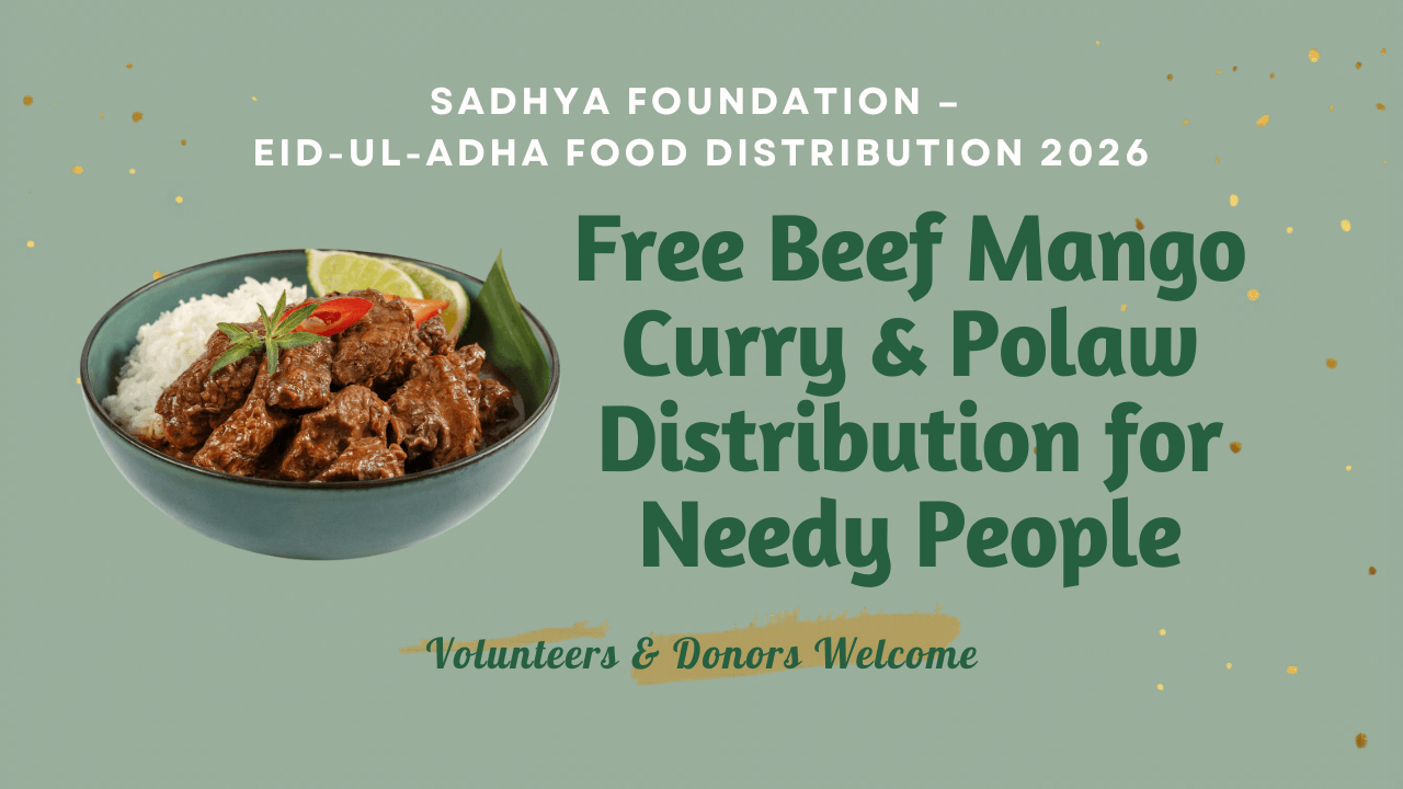 On the upcoming Eid-ul-Adha, Sadhya Foundation will prepare Beef Mango Curry and Polaw and distribute the meals completely free to underprivileged and needy people.